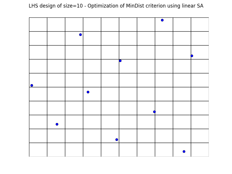 Using the SimulatedAnnealingLHS class, tests are implemented and results are summuarized here: