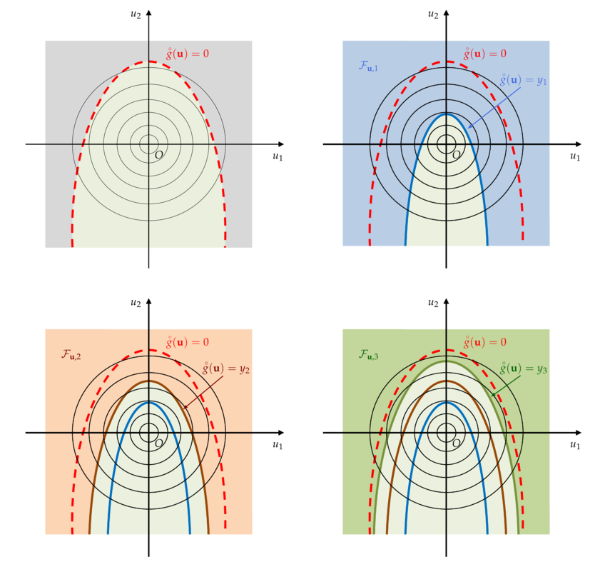 (Top left) The true but unknown limit state surface ; (Top right) First intermediate failure domain .